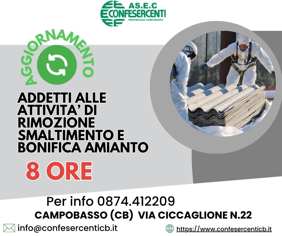 CORSO FAD PER ADDETTI ALLE DI RIMOZIONE, SMALTIMENTO E BONIFICA AMIANTO (DIRIGENTI ED OPERATIVI) AGGIORNAMENTO (8 ore)